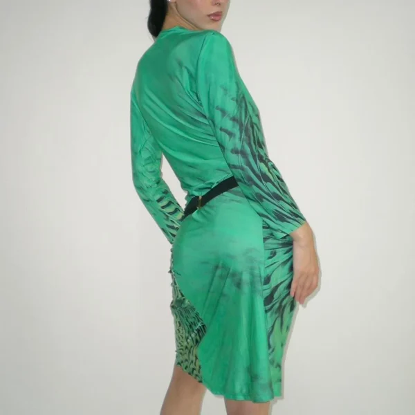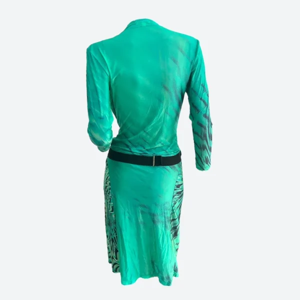 ROBERTO CAVALLI SS2001 PSYCHEDELLIC MIDI EMERALD GREEN PRINT DRESS