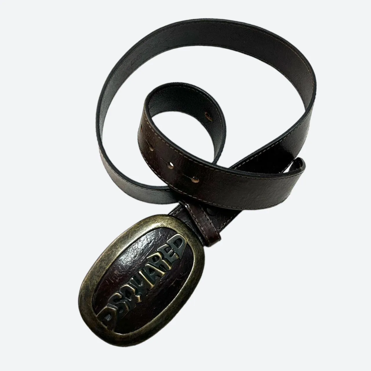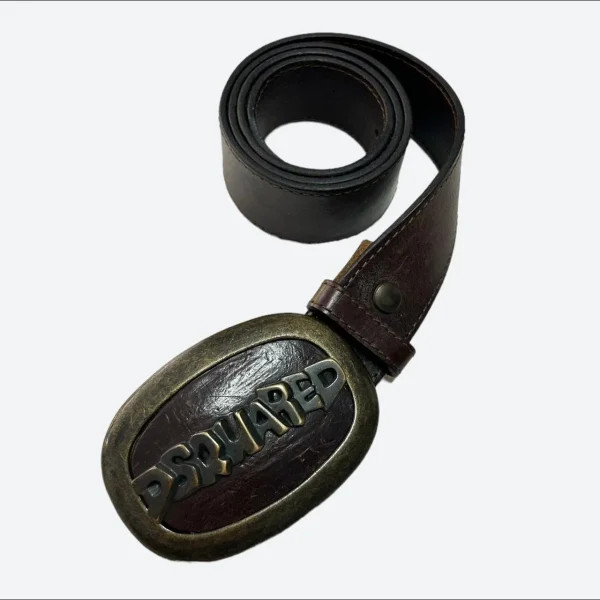 Dsquared2 brown leather belt. Crazy belt from the 2000s with this chunky iron and leather buckle with the logo in it. Pristine condition (like new). From 2003/2006 and seen in the new FW 2023 campaign.