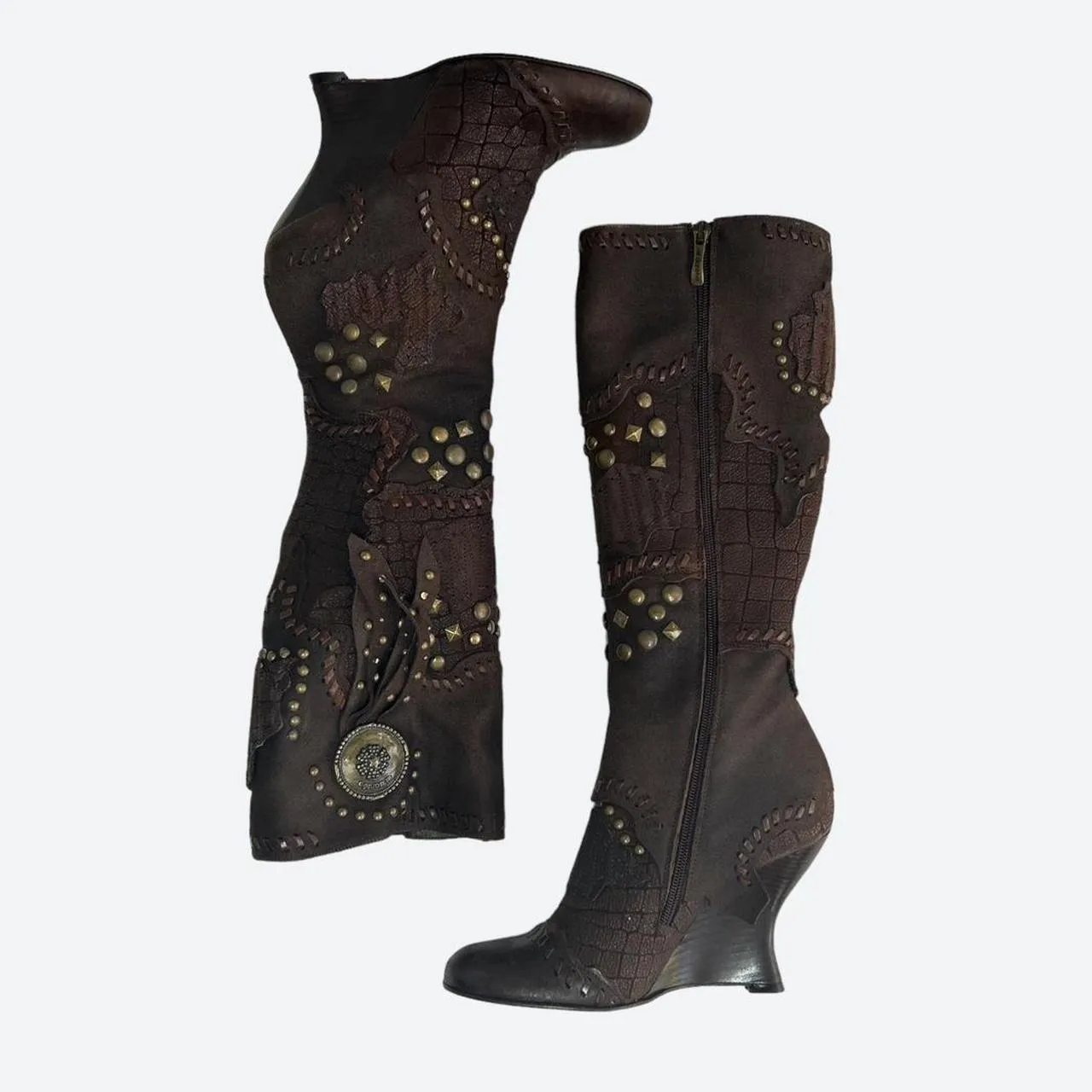 EL DANTES BROWN LEATHER BOOTS WITH MANY STUDS