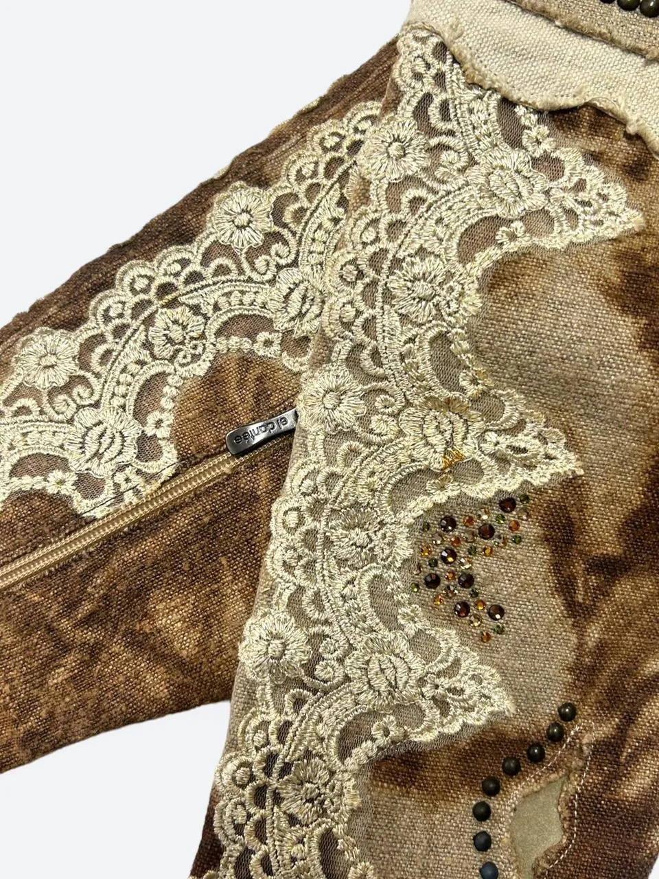 This rare pieces has a lot of beautiful details: engraved leather, orange Swarovskis, lace, metallic tacks… very pirate girl vibes