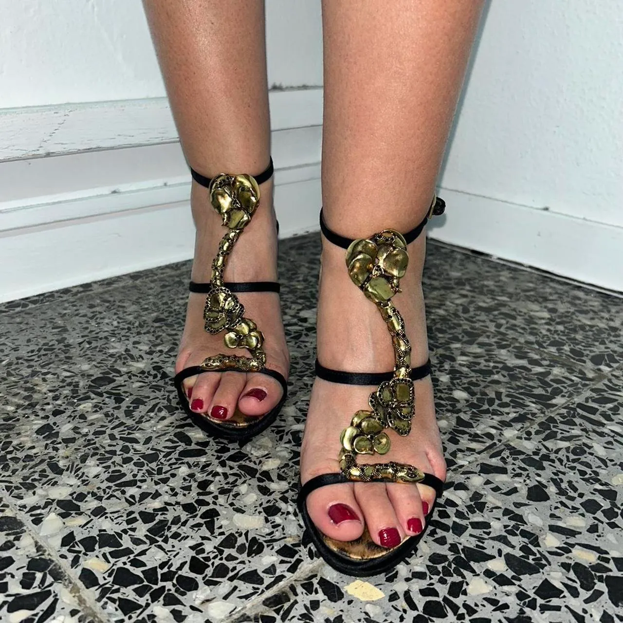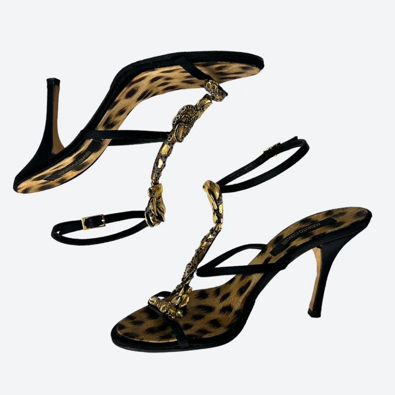 Roberto Cavalli delicate jewel gold snake/flowers heels from the early 00s in perfect vintage condition.