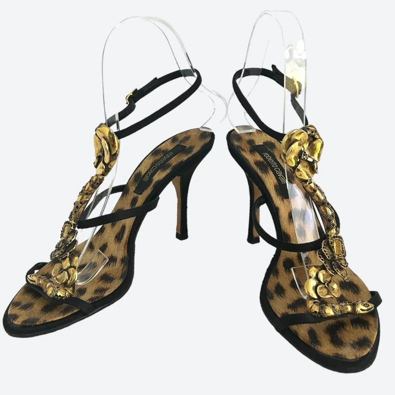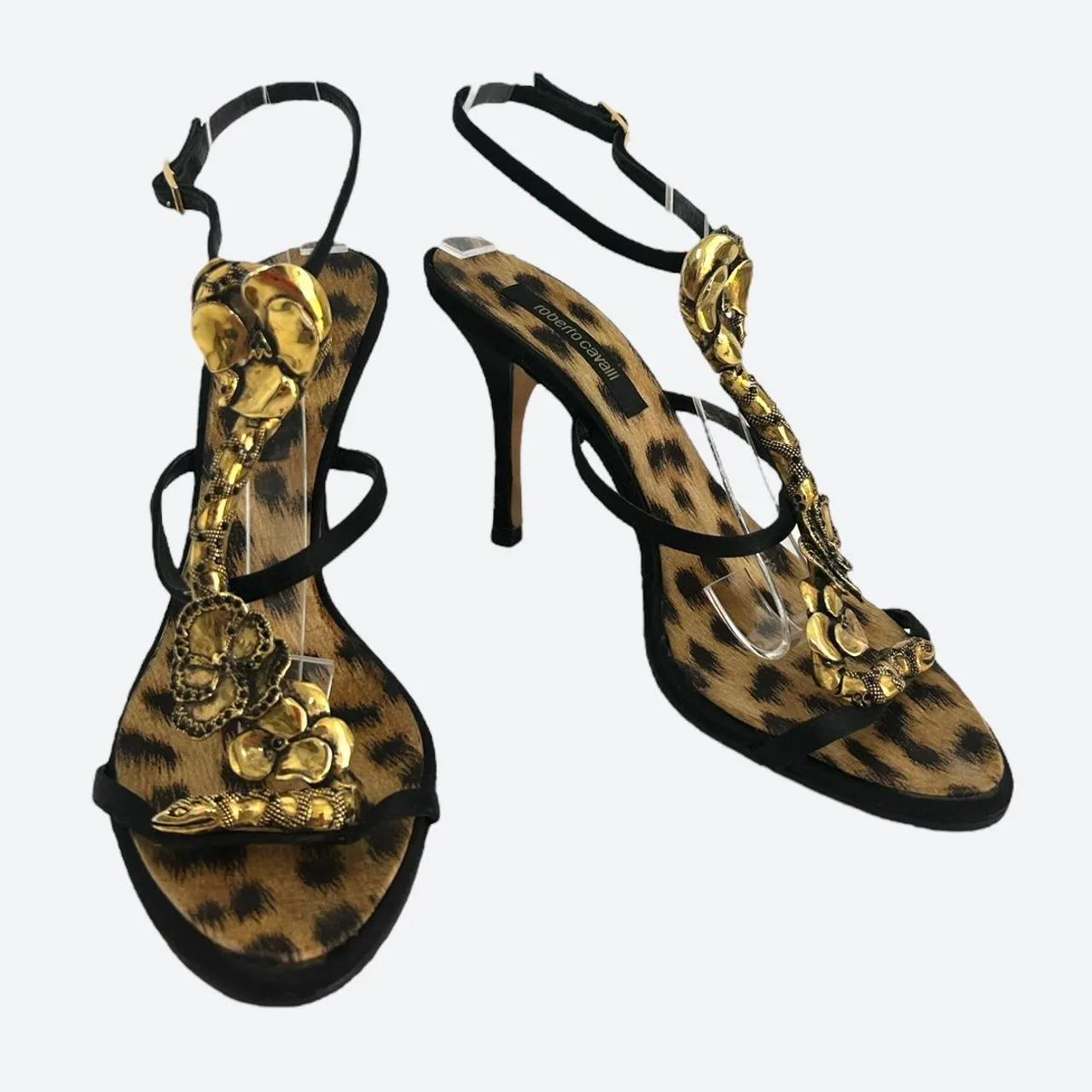 ROBERTO CAVALLI DELICATE JEWEL GOLD SNAKE/FLOWERS HEELS