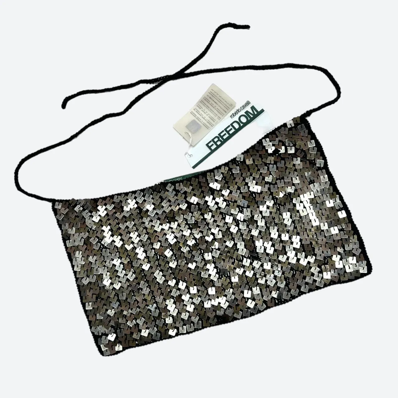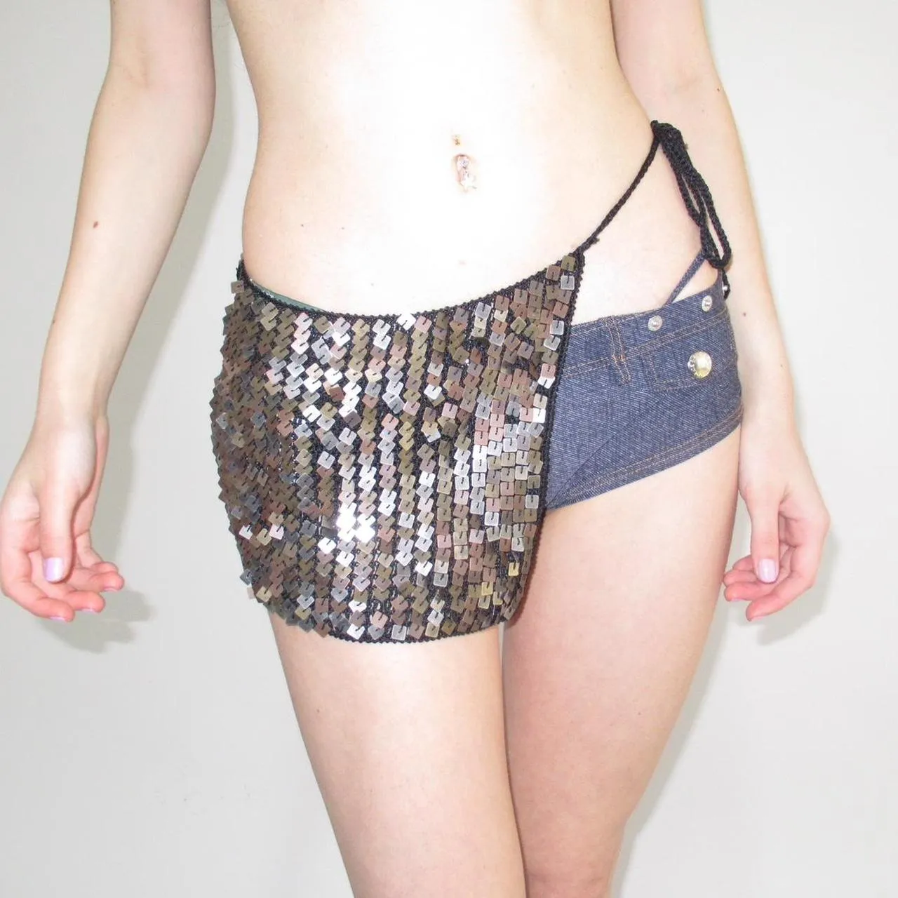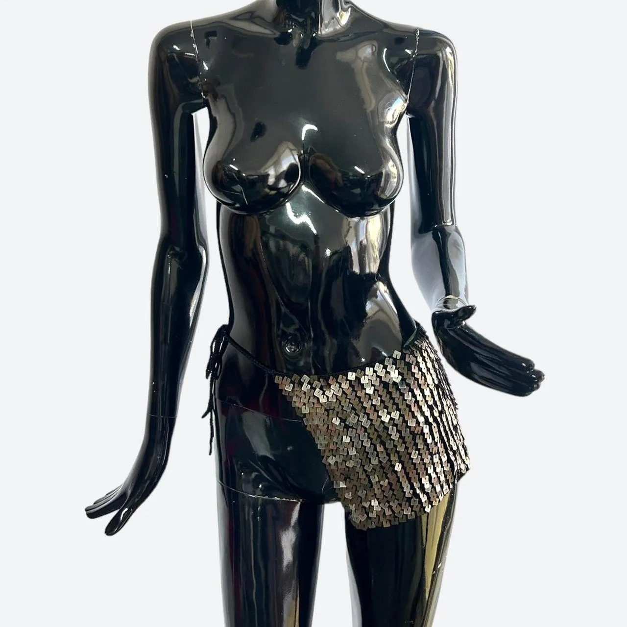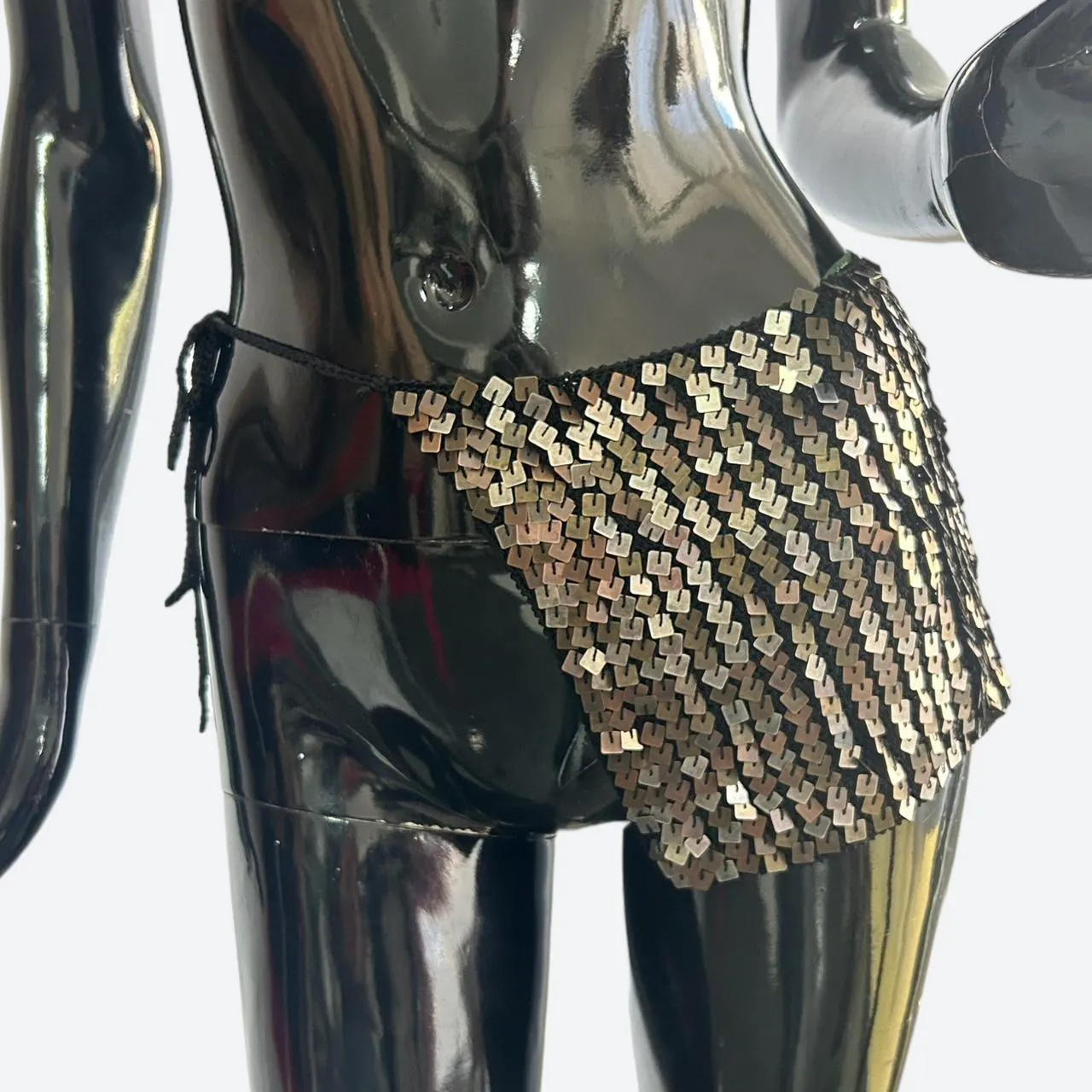 Roberto Cavalli Freedom early 00s micro sarong. This rare piece is fully made with metallic sequins on a knitted black base. Perfect to wear as a complement. Pristine vintage condition. Original tags.