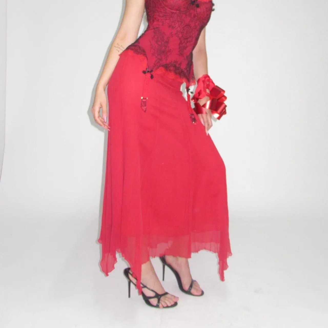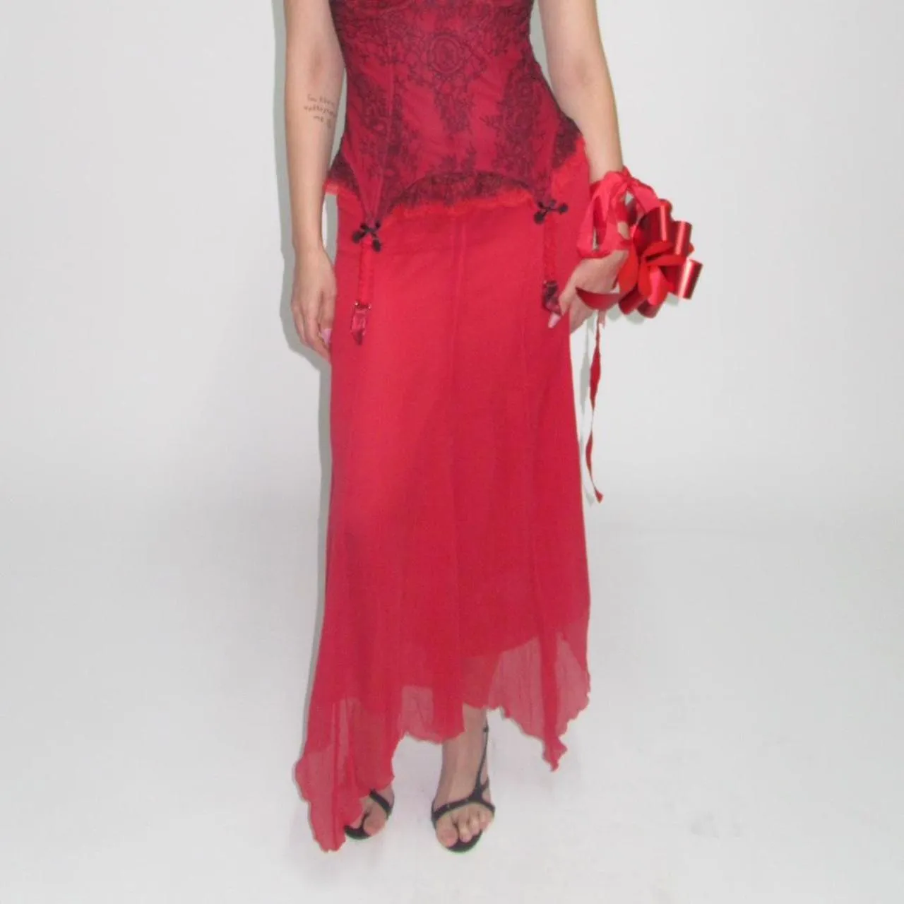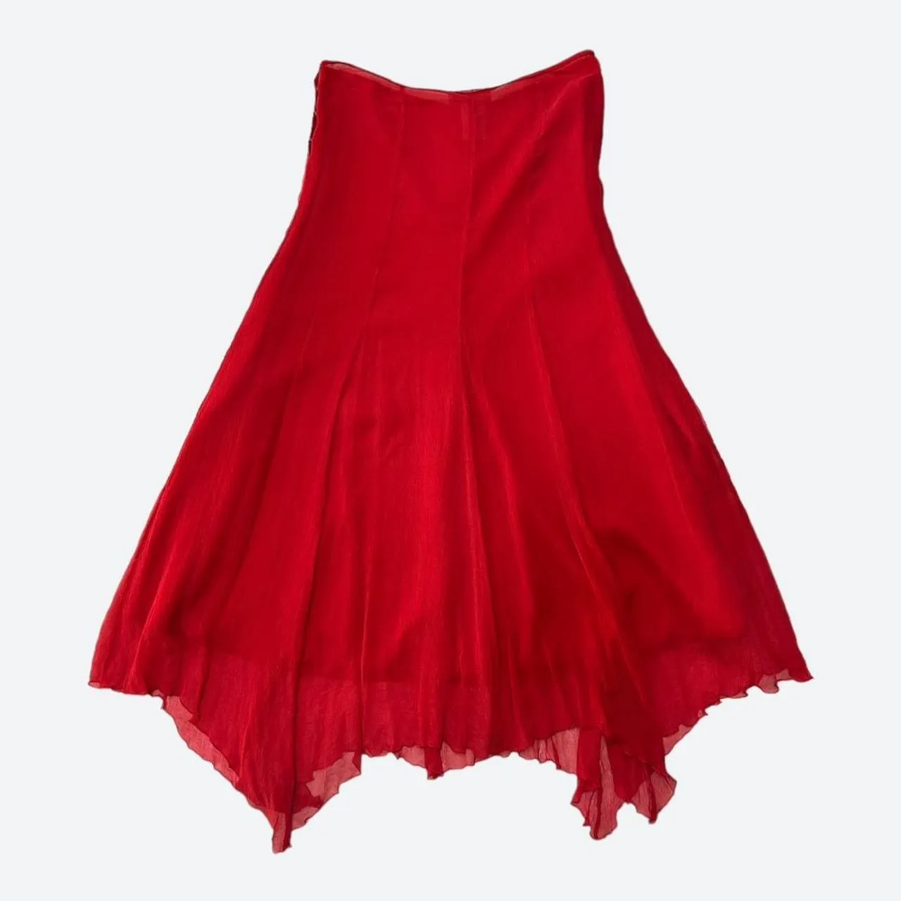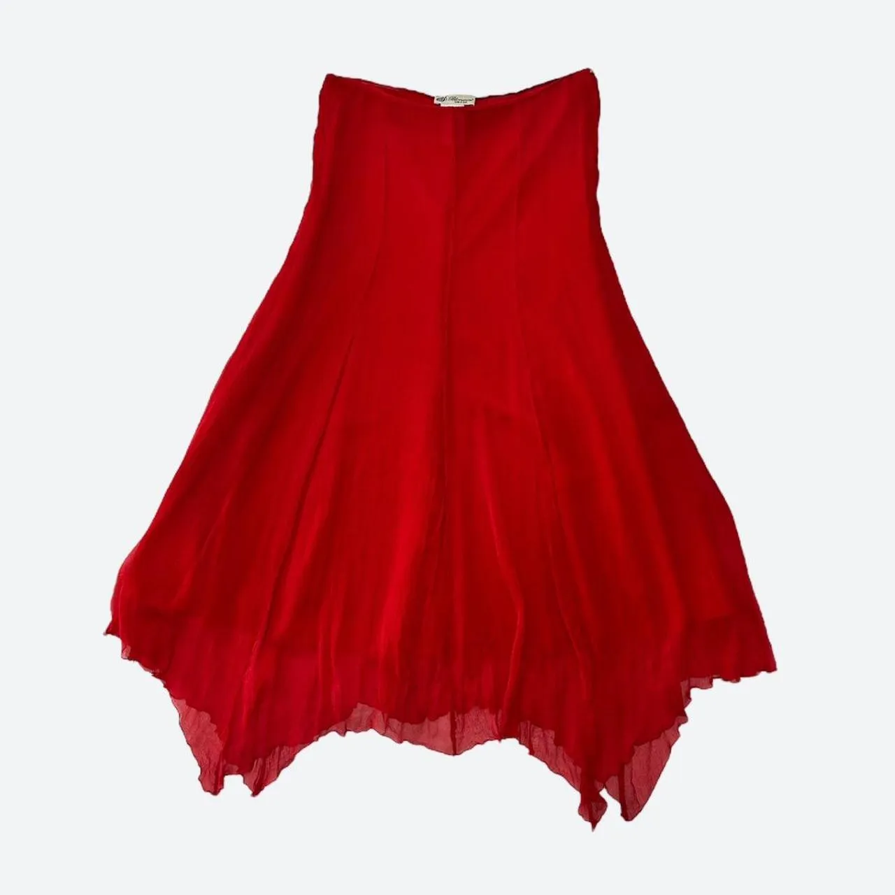 BLUMARINE LATE 90S RED PURE SILK MAXI SKIRT