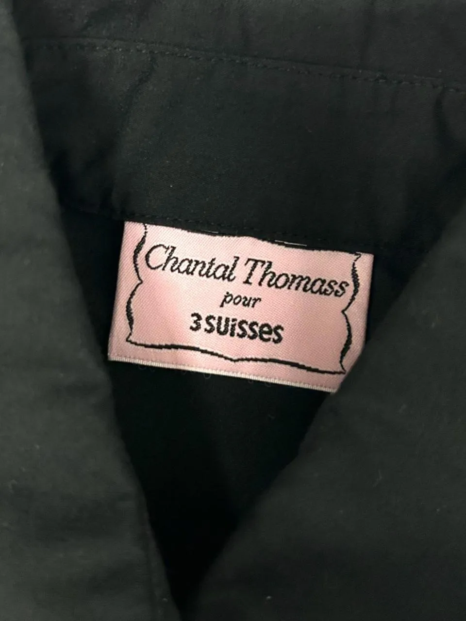Chantal Thomass Black Embroidered Bib full of Bows. Backless and satin strap to tie at the waist. Very Good Vintage Condition.