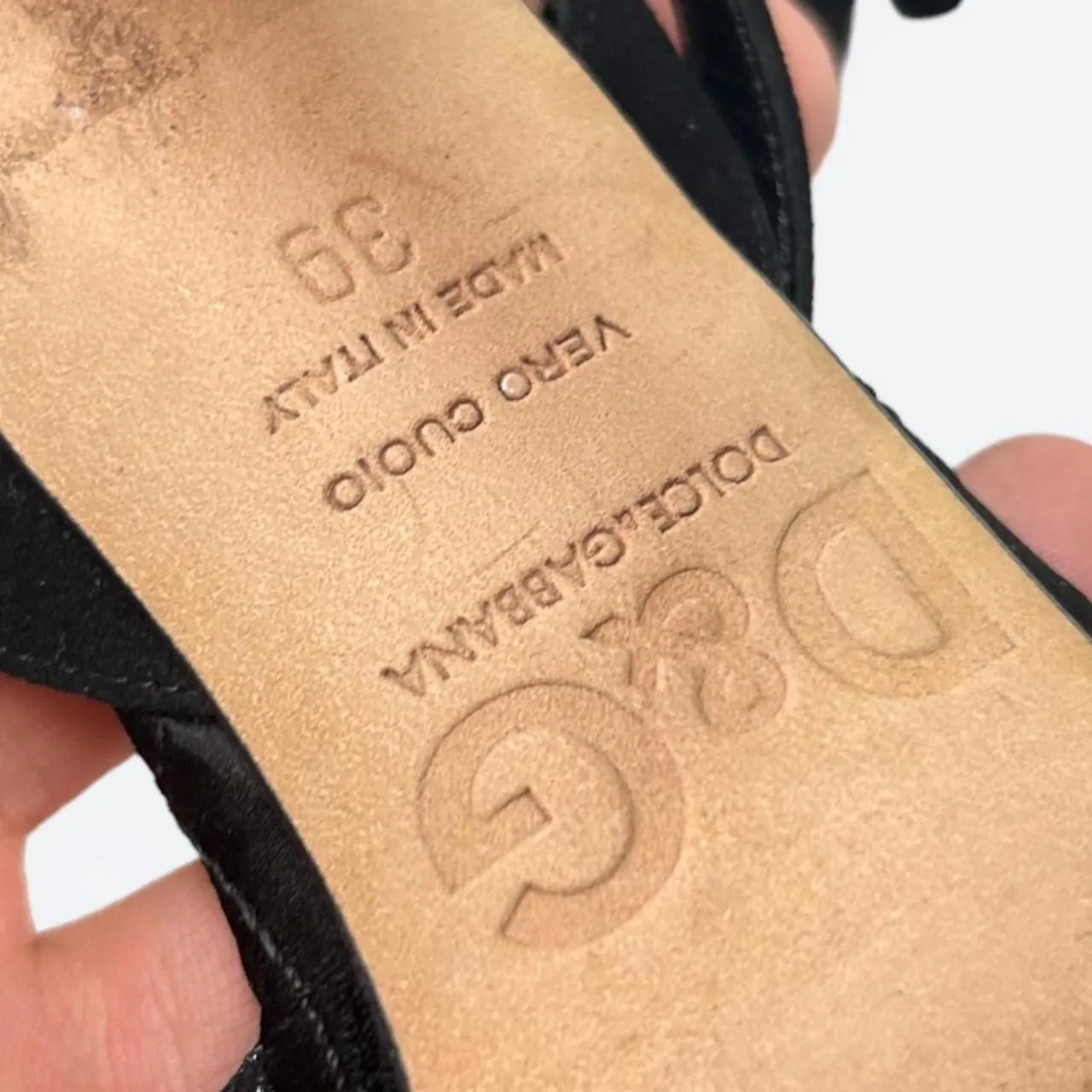 DOLCE&GABBANA “D&G” BLACK VELVET AND LEATHER HEELS