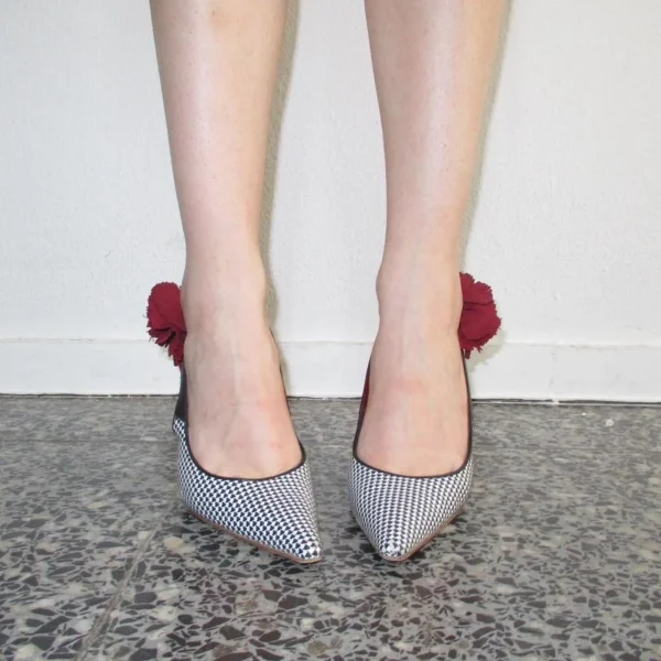 Dolce&Gabbana mis 00s houndstooth courts. Very chic courts with this beautiful carnation flowers made out of leather. Very good vintage condition.
