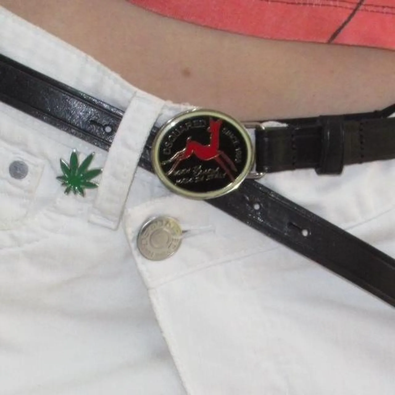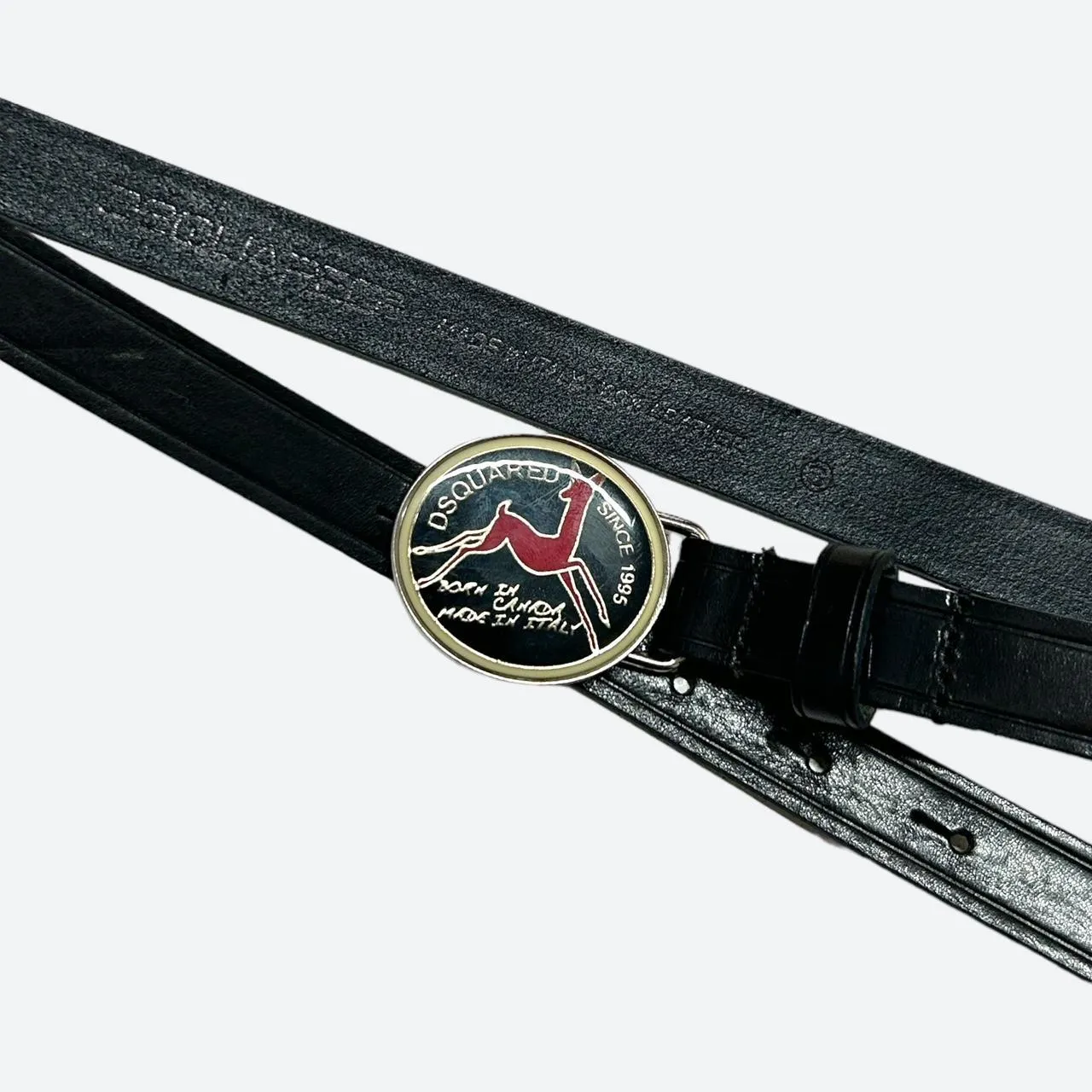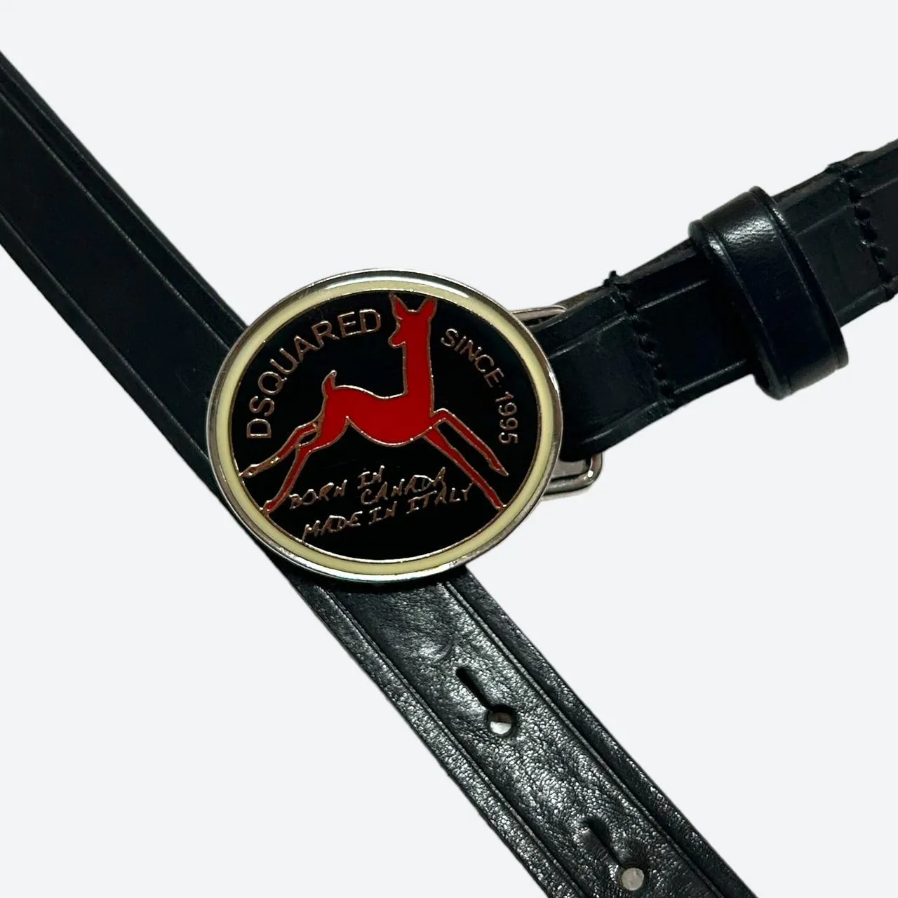 Dsquared2 “Red Bambi” belt. Mid 00s pieces with black leather belt and this cute metallic buckle. Perfect vintage condition.