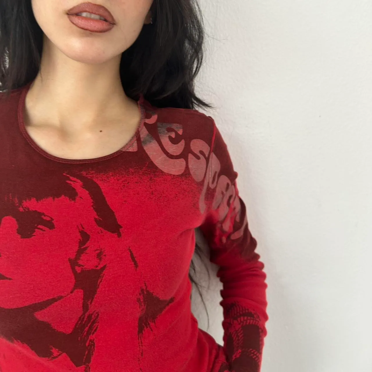 Miss Sixty rare early 00 grunge red faces print top in very good vintage condition.
