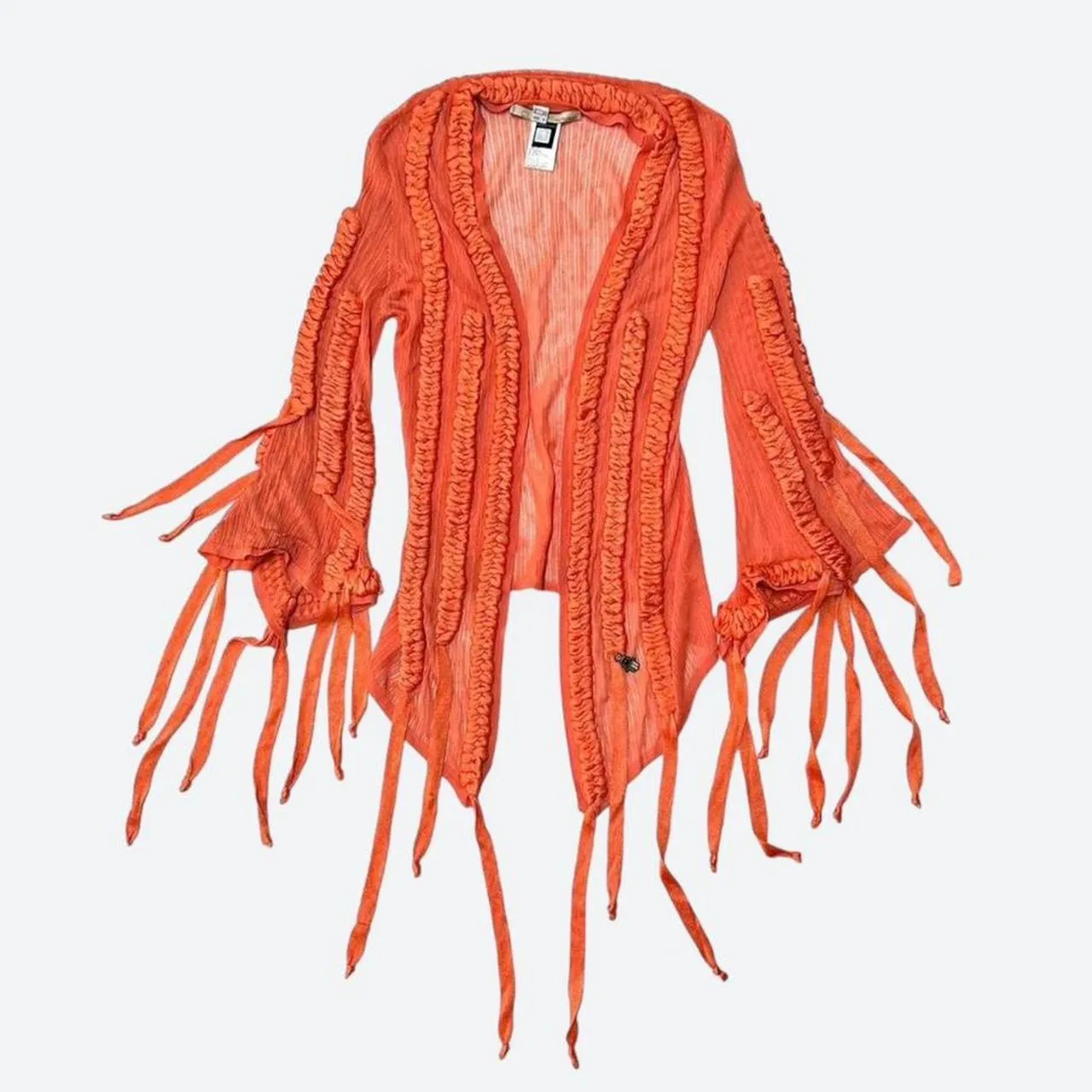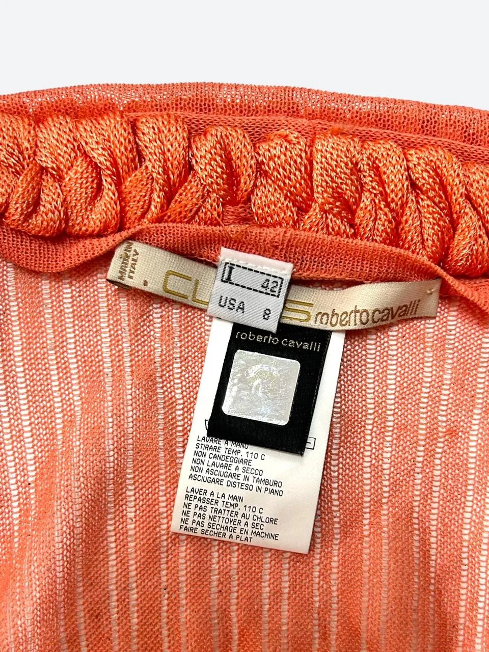 Roberto Cavalli Class Orange Braided Blouse. The finishes of the garment are incredible. In very Good Vintage Condition. Made in Italy.