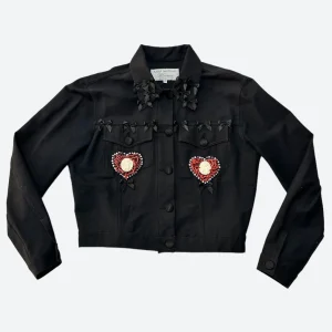BLUMARINE X ANNA MOLINARI SS 1993 VERY RARE CORAL HEART EMBROIDERED BLACK JACKET