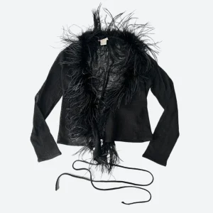 BLUMARINE BLACK KNIT + FEATHERS CARDIGAN